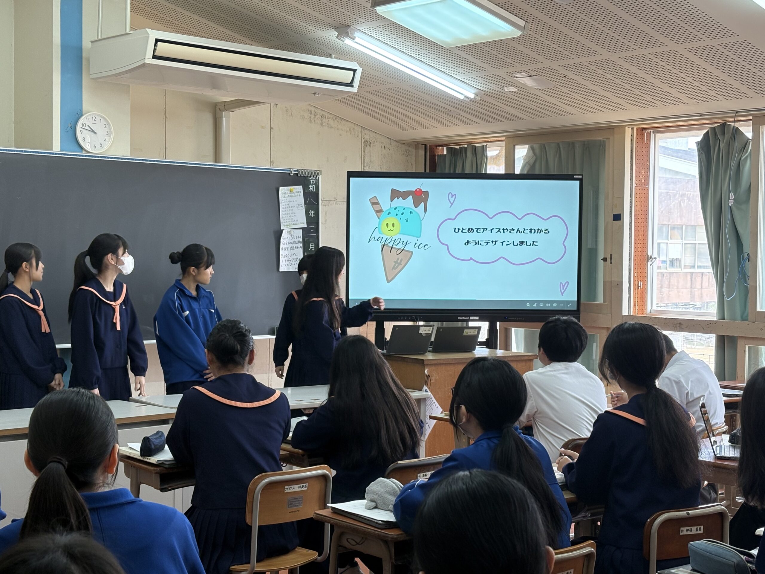 高江洲中学校の生徒が「総合的な学習の時間」を活用し、うるま市の食材を使ってランチメニューを考案し、地域活性化の取り組みをプレゼンテーションしました。